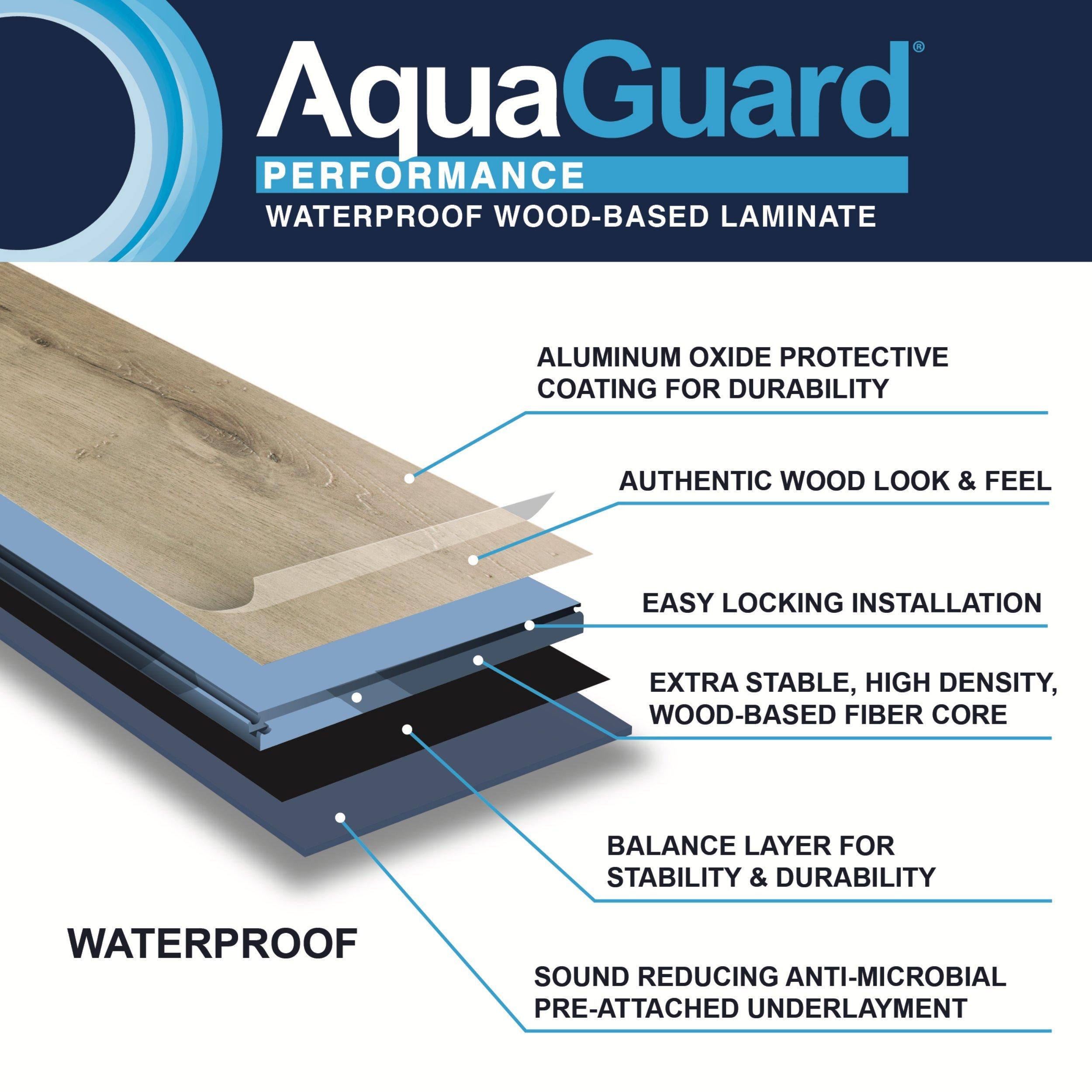 Visit Floor Decor Today. AquaGuard Performance is waterproof wood-based laminate flooring with ultimate durability. AquaGuard flooring reviews are largely positive for both lines and both have a limited lifetime residential warranty.
